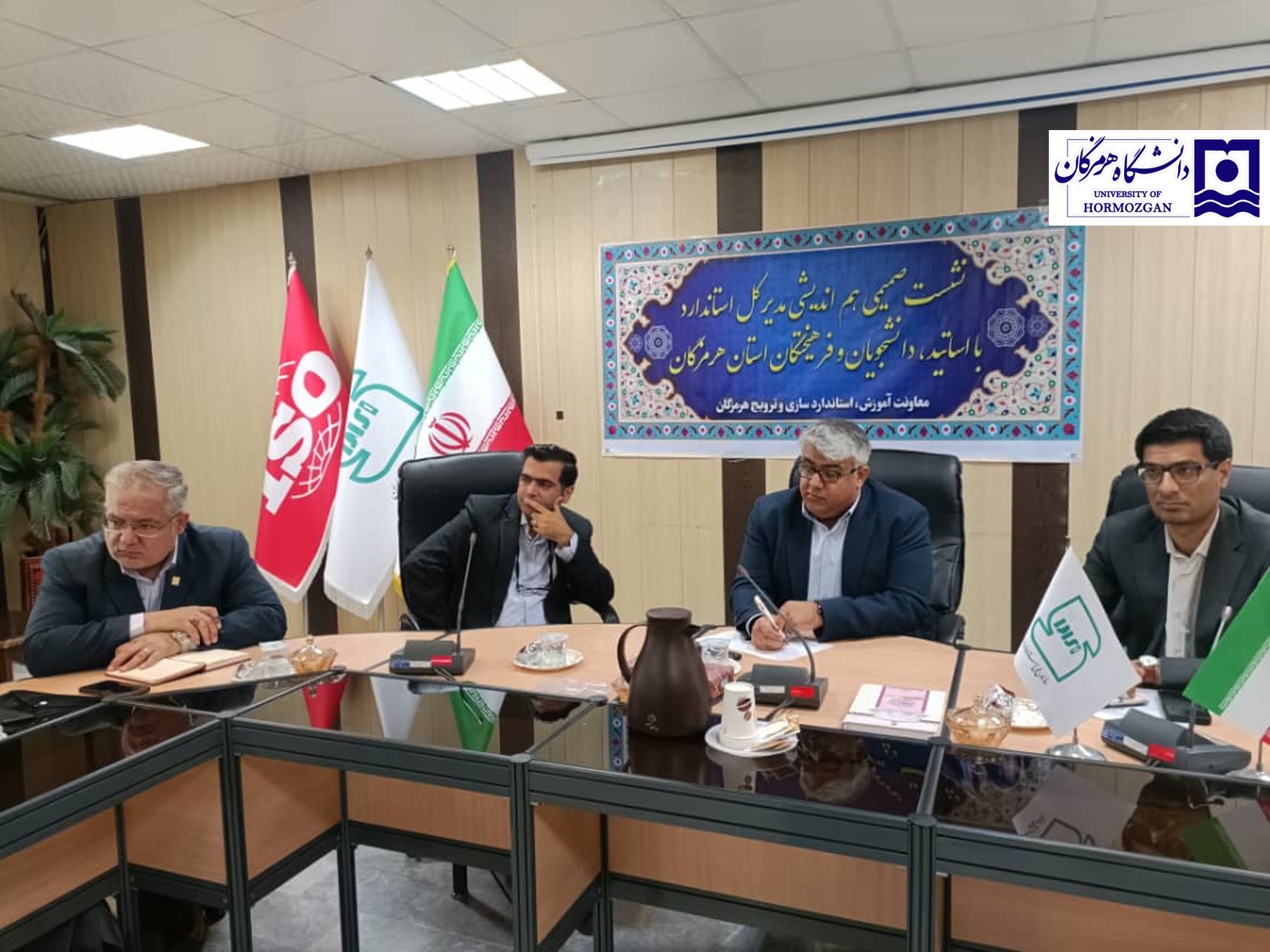 نشست مشترک اداره کل استاندارد هرمزگان با دبیران انجمن‌های علمی و کانون‌های فرهنگی دانشگاه هرمزگان با هدف تقویت همکاری‌های آموزشی، کارآموزی و پژوهشی برگزار شد. در این جلسه بر استفاده از ظرفیت آزمایشگاه‌ها و صنایع زیرمجموعه استاندارد برای مهارت‌آموزی و اجرای برنامه‌های فرهنگی در هفته استاندارد تأکید شد.