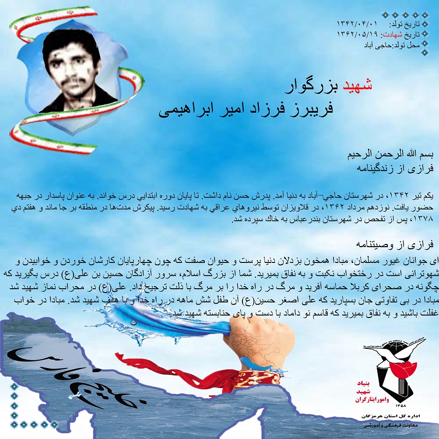 فرازی از زندگینامه و وصیتنامه شهید بزرگوار فریبرز فرزاد امیرابراهیمی