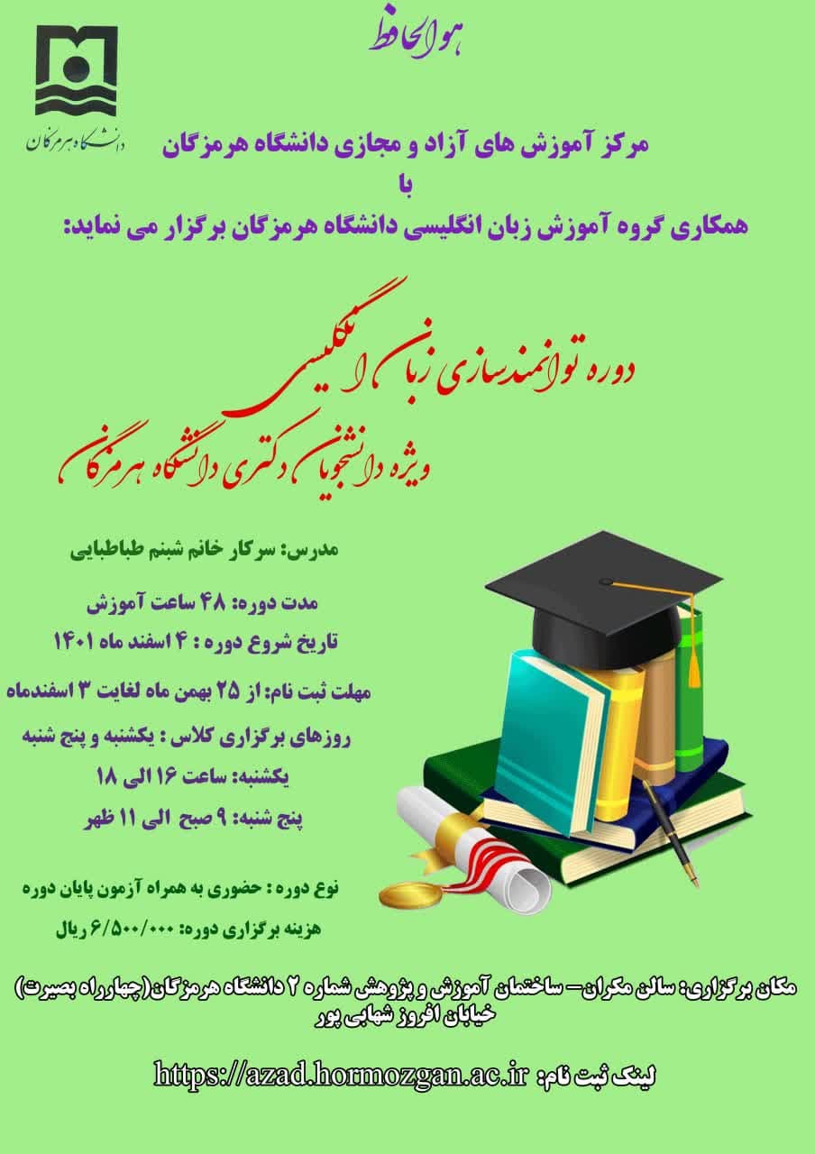 مرکز آموزش های آزاد و مجازی دانشگاه هرمزگان با همکاری گروه آموزش زبان انگلیسی