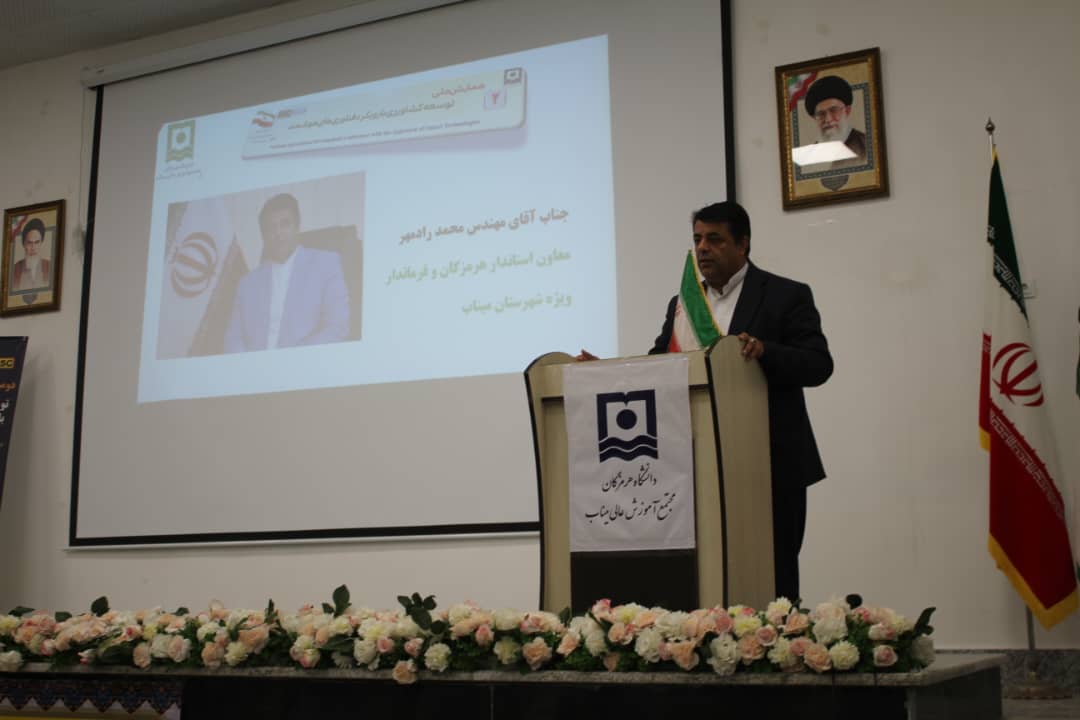 دکتر نصیری رییس محترم پارک علم و فناوری استان هرمزگان به عنوان یکی از برگزارکنندگان همایش، توضیحات مبسوطی راجع به شرکت­های فناور و دانش بنیان فعال عضو پارک علم و فناوری استان هرمزگان و آورده ­های مهم این شرکت­ها ایراد سخن فرمودند. دکتر نصیری در ادامه راجع به جزییات بیشتری از تعدادی از شرکت­های فعال در حوزه هوشمندسازی و محصولاتشان پرداختند.