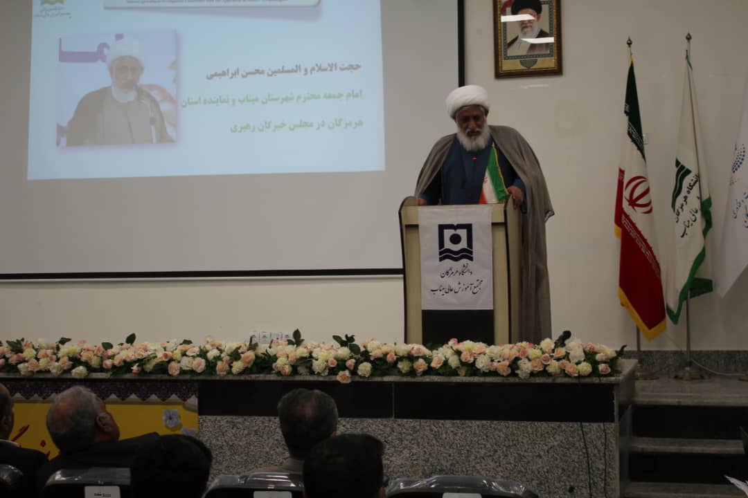 در ادامه ی این همایش، آیت ­الله ابراهیمی امام جمعه محترم میناب و نماینده ی مردم شریف شرق هرمزگان در مجلس خبرگان رهبری، درباره اهمیت علم و دانش و تاکید بر استفاده از فناوری ­های نوین جهت آبادانی و پیشرفت و توسعه ایراد سخن فرمودند.